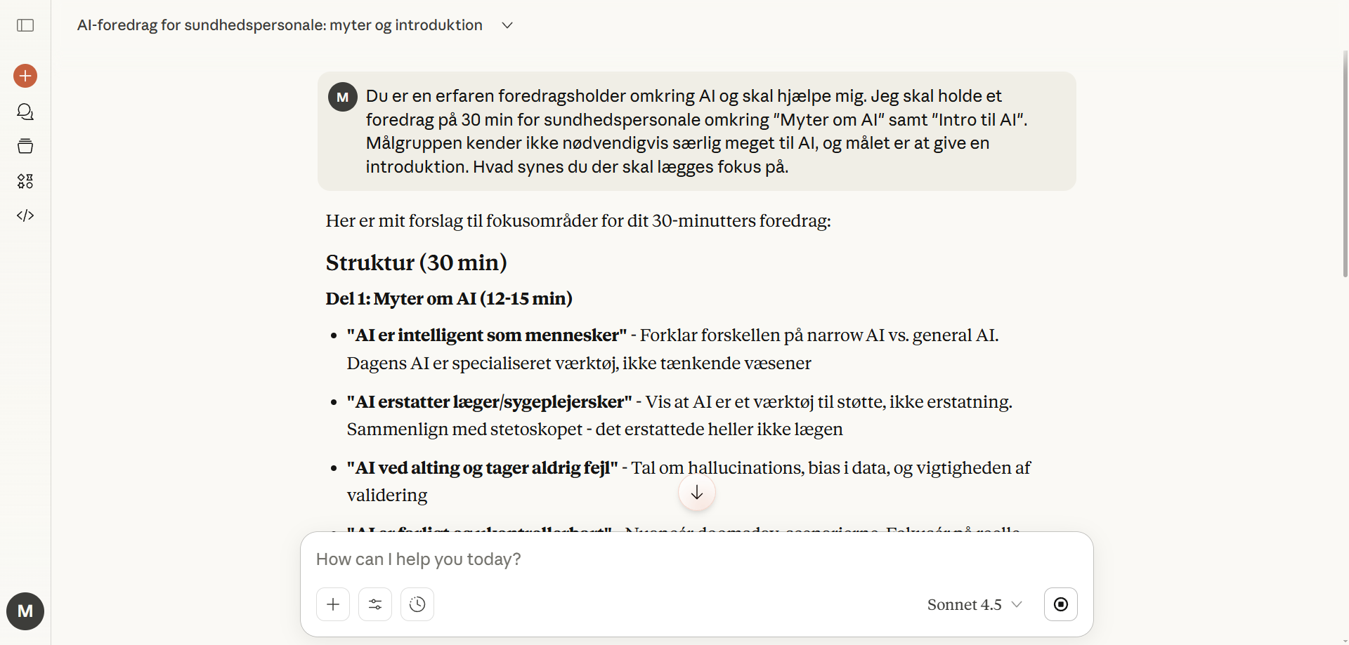 Her er det svar jeg fik tilbage fra AI'en (ChatGPT-5 men det kan være andre modeller), og nu kan konstruktionen af prompten gå i gang ved at svare på de stillede spørgsmål: